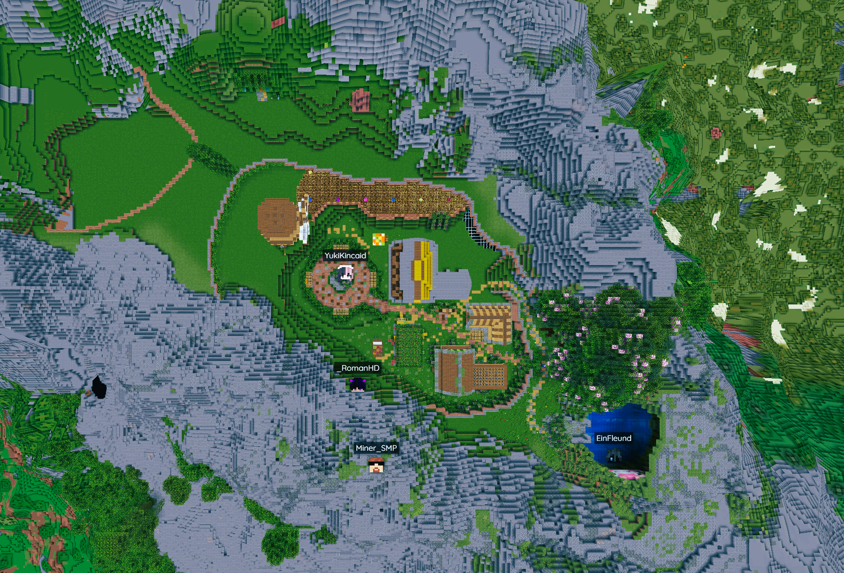 Auf unserer BlueMap kannst du dich und die anderen Spieler die ganze Zeit live verfolgen oder sie suchen wenn du dich mit ihnen Treffen möchtest. Für mehr Informationen drücke den Buttom "MEHR DAZU".